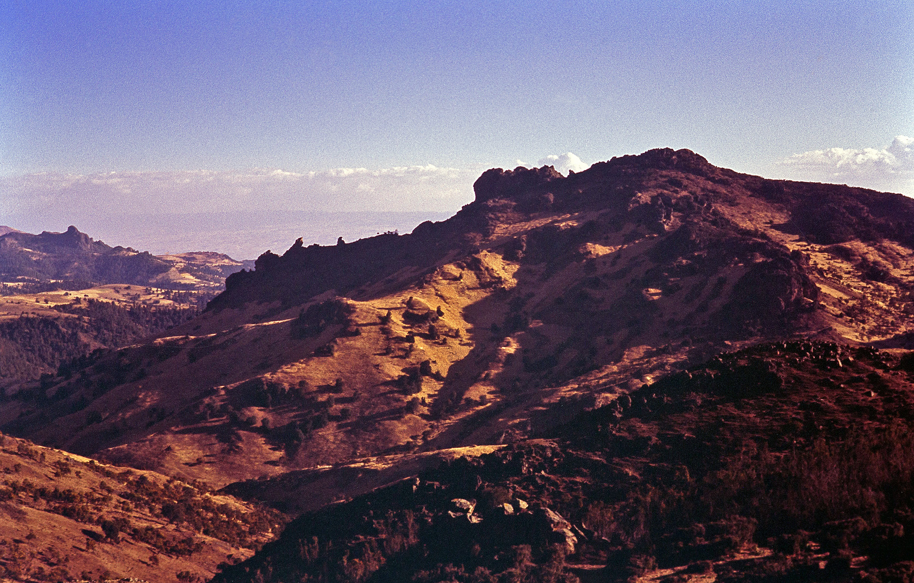 Jak jsme stoupali vzhůru, otevírala se za námi překrásná panoramata ethiopských hor. Někdo podotkl, že jestli něco těm jeskynním lidem závidí, tak je to tento výhled.