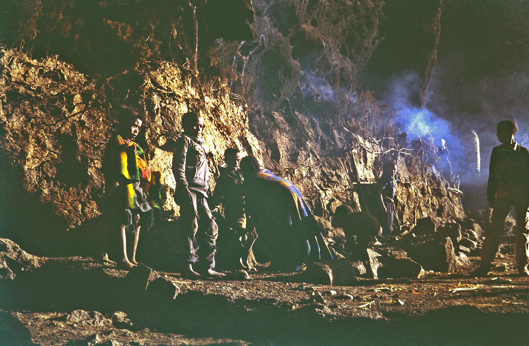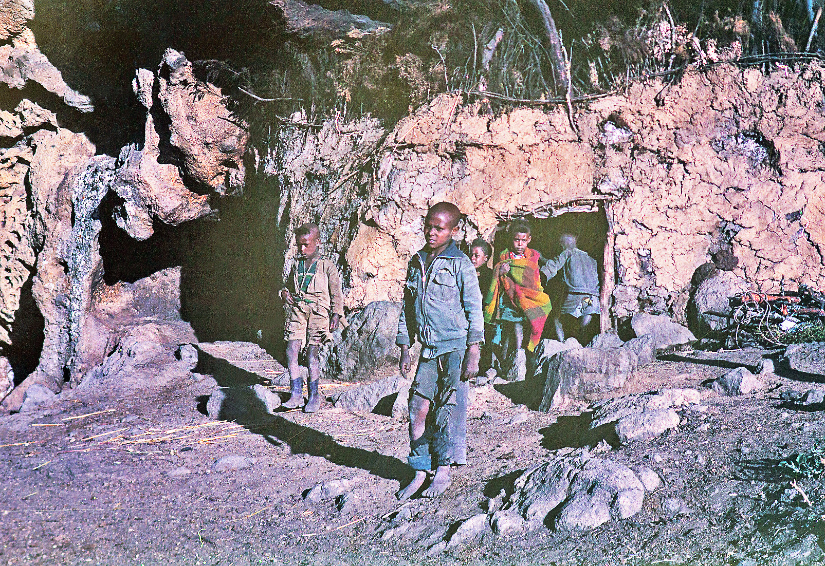 Přistoupili jsme blíž a to co jsme viděli nás šokovalo. Pod skalním převisem byly postavené příbytky. Ale jaké! Stěny z větví a oslího trusu, stup do příbytku otvory bez dveří a po levé straně jsme viděli jakýsi vstup do nitra hory, vytesaný do masivu skály. Tímto otvorem se vyhrnulo několik dětí, mezi nimiž jsme poznali kluka, kterému jsme před chvílí dali pár drobných.