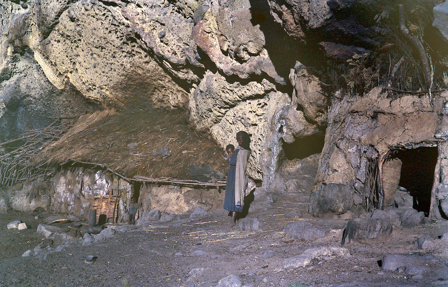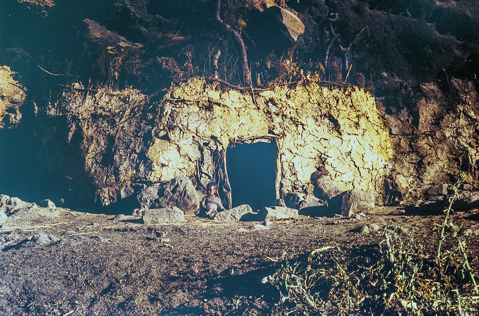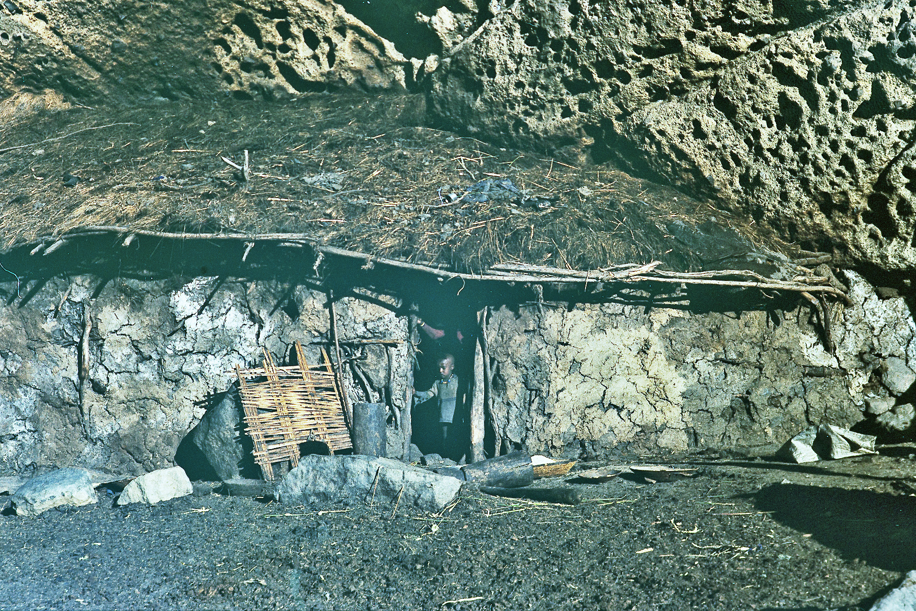 I v tomto, pro nás zcela nepochopitelném světě bují život se vším všudy. Zde je dost zřetelně vidět příbytek v jehož dveřích stojí klouček a matka chová děťátko. Tatínek musel být hodně aktivní, protože dětská úmrtnost v těchto podmínkách musí být značná. Pochybuji, že rodiče se dočkají nějakého důchodu a bez pomoci svých dětí by hned umřeli hlady.
