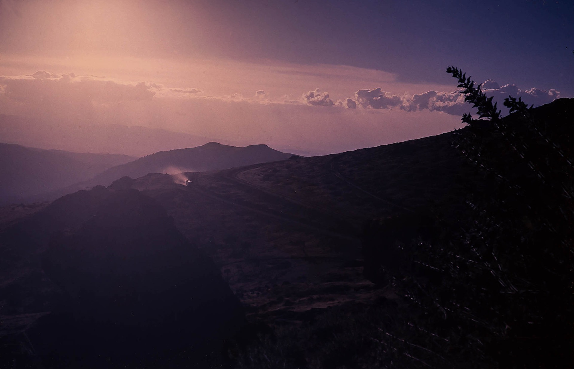 Krajina kolem "Dračí skály" se s námi rozloučila krásným západem slunce a my jsme pokračovali směrem Malka Wakana.