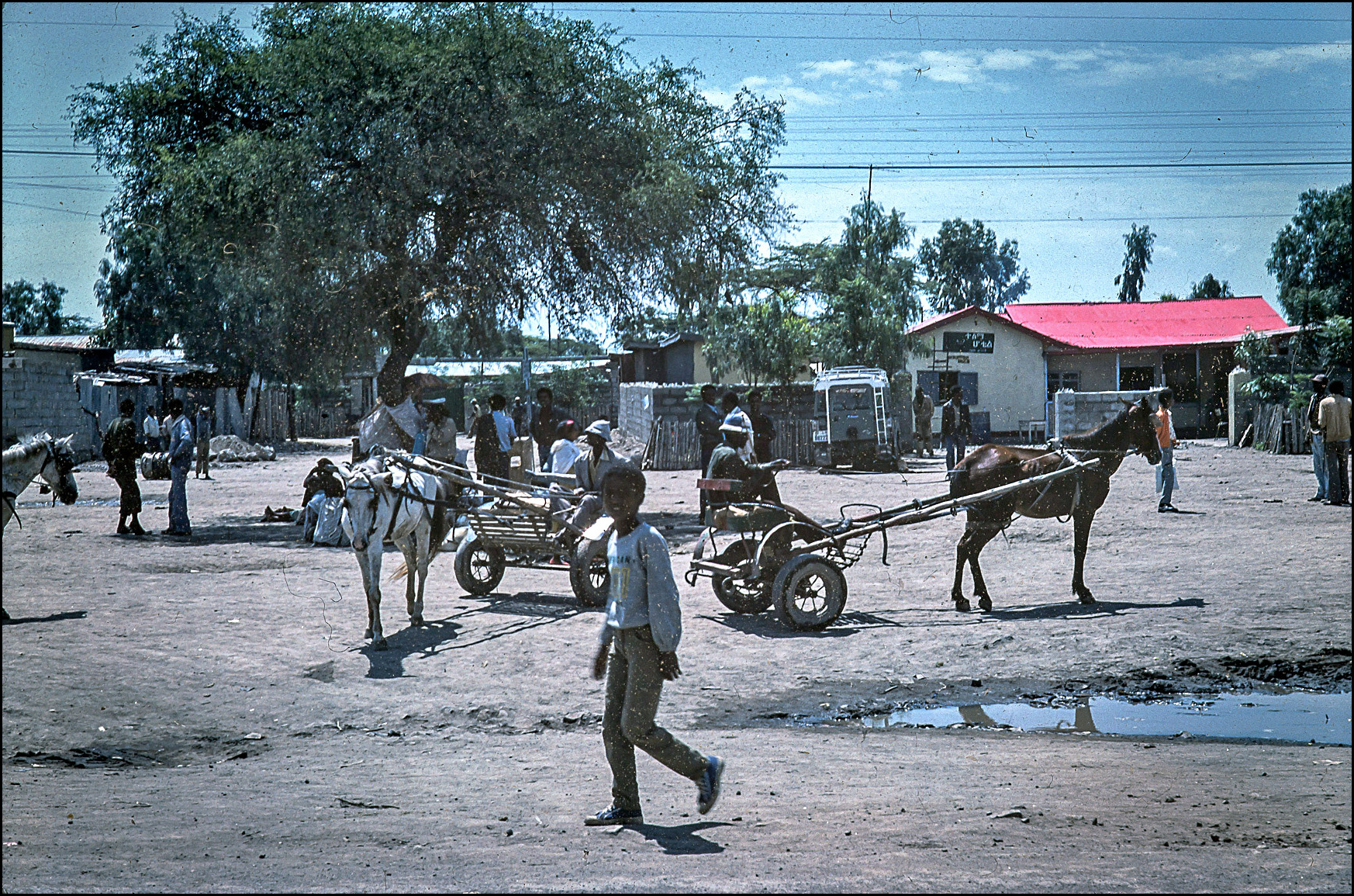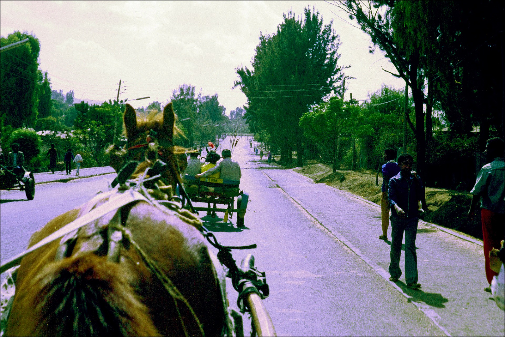 Na rozdíl od Addis tady nejezdily motorizované taxíky, ale dvojkolové vozíky tažené koněm, nebo oslem. Napáskovali jsme se tedy, vředu jela Tsehay s Jirkou a my s Gorbim jsme je následovali.
