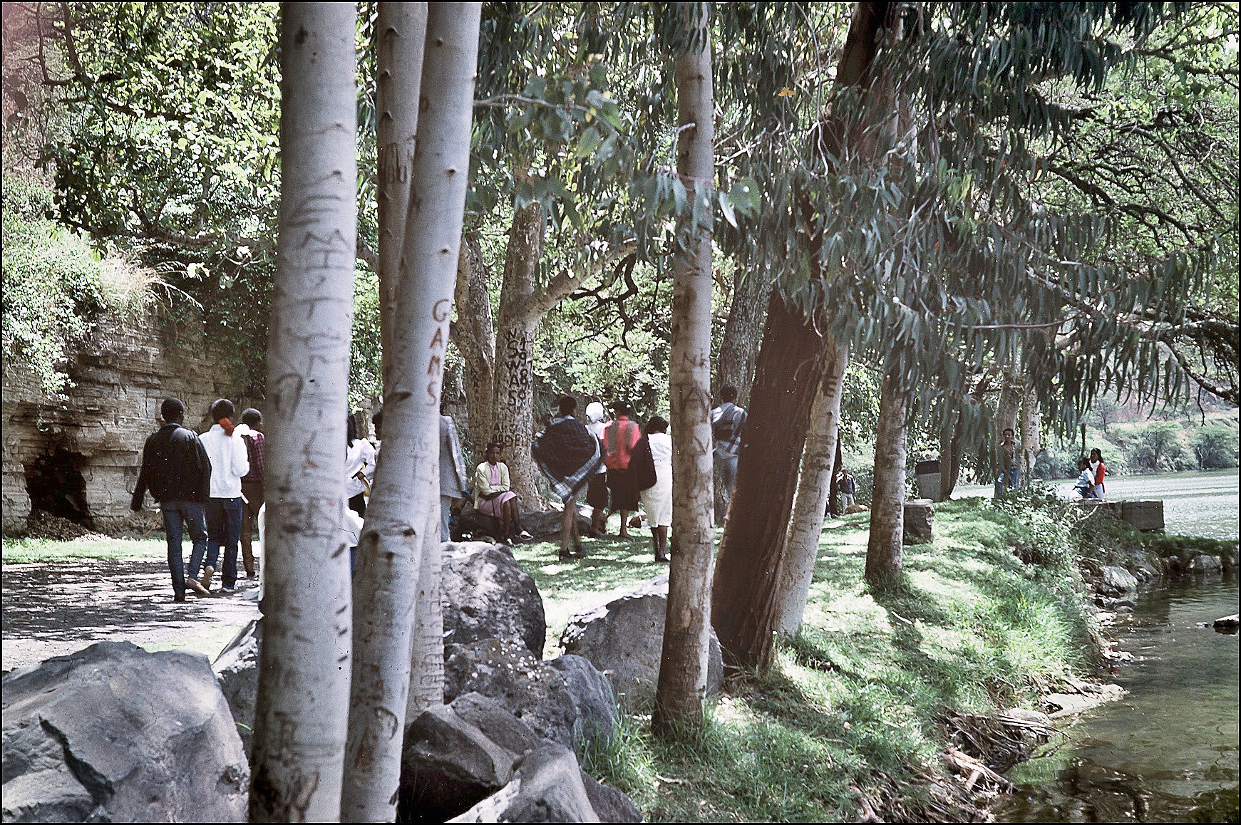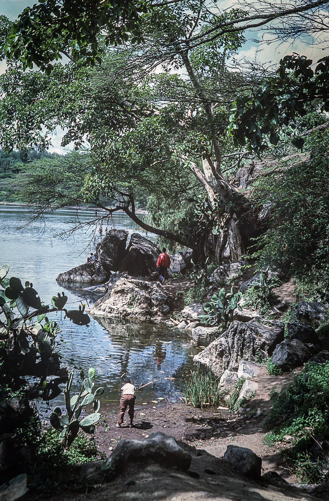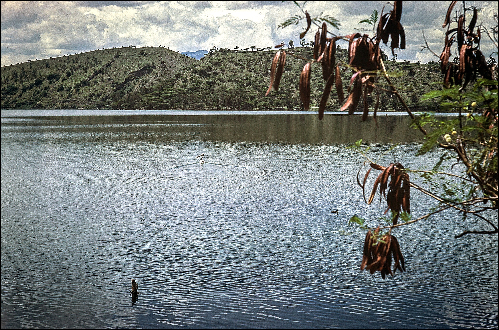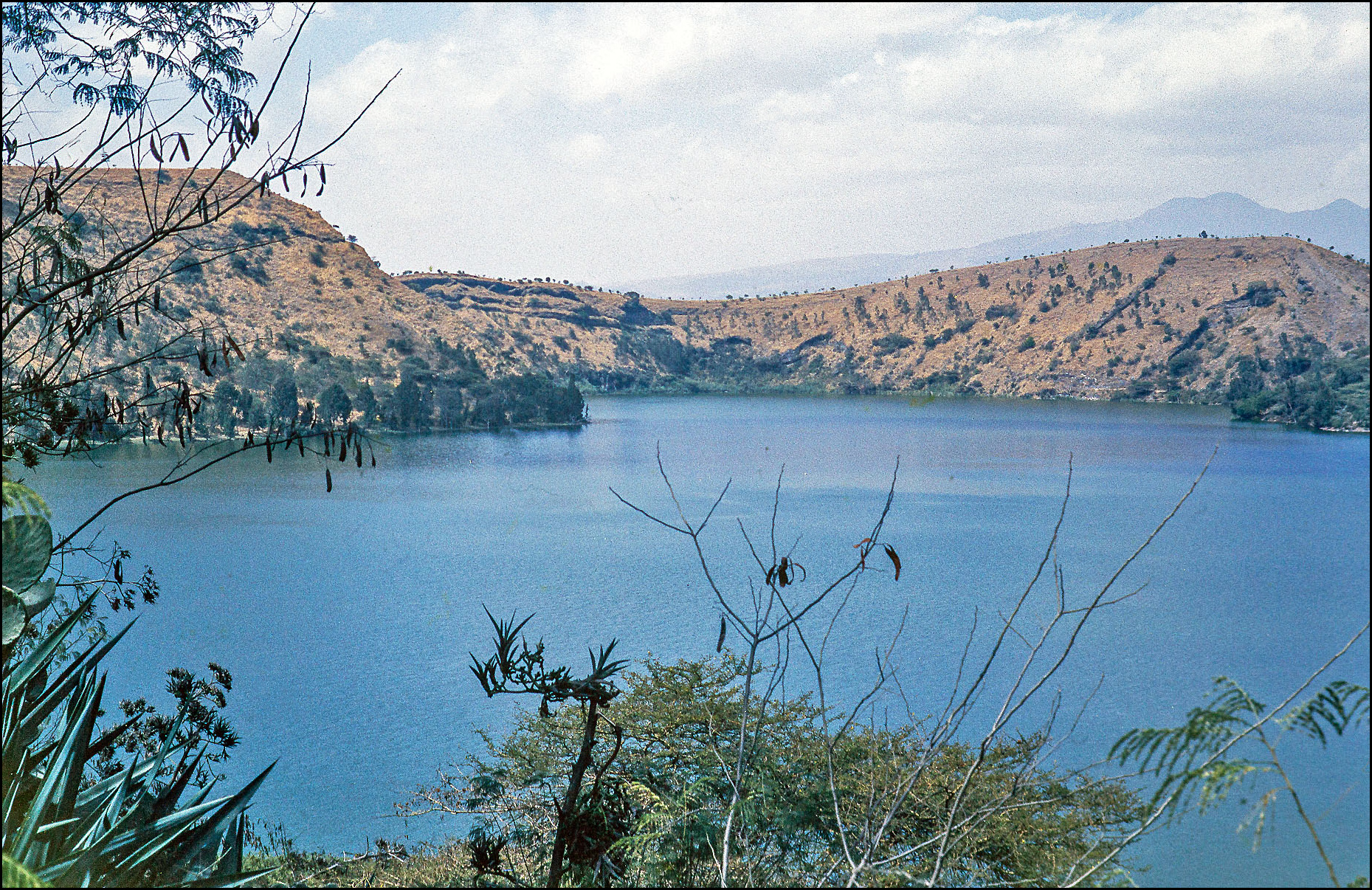 Tak a jsme na okraji velké kalvy, kdysi plné žhavé lávy a plynů. Nyní je v ní větší jezero Hora, kde se dá i koupat, ale to jsme s ohledem na možné získání bilharzie, odmítli zkusit. Kolem celého jezera vede pěkná stezka, kde člověk nerušeně může pozorovat stovky druhů ptáků od pelikánů až po modré "ledňáčky" s červeným zobákem, prodírat se křovím a opunciemi a užít si tu oázu klidu a míru. Bohužel tuto cestu jsme odmítli absolvovat, což mě osobně později velmi mrzelo.