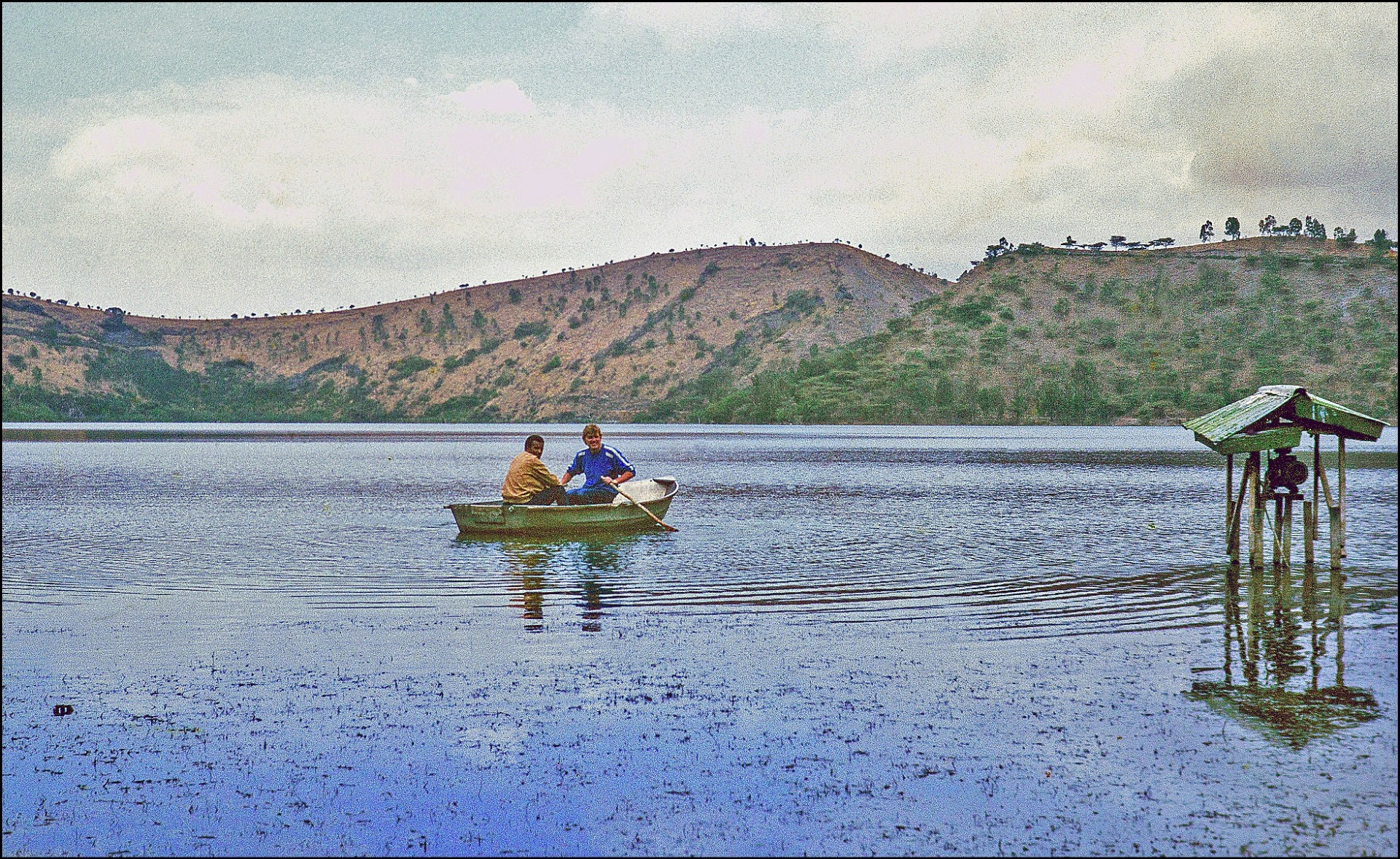 Bylo zajímavé, jaký vzthah měli místní lidé k hluboké vodě. Zatímco my máme vodu rádi a koupání je pro nás přirozená věc oni se jí bojí. Myslím, že už jsem tady napsal Gorbiho zděšený výraz v bazénu u Ghionu, když zjistil, že pod nohami necítíl dno. I na projížce na lodičce podél břehů jezera Hora měl zrovna takový výraz a byl evidentně rád, když jsme vystoupili na břeh.