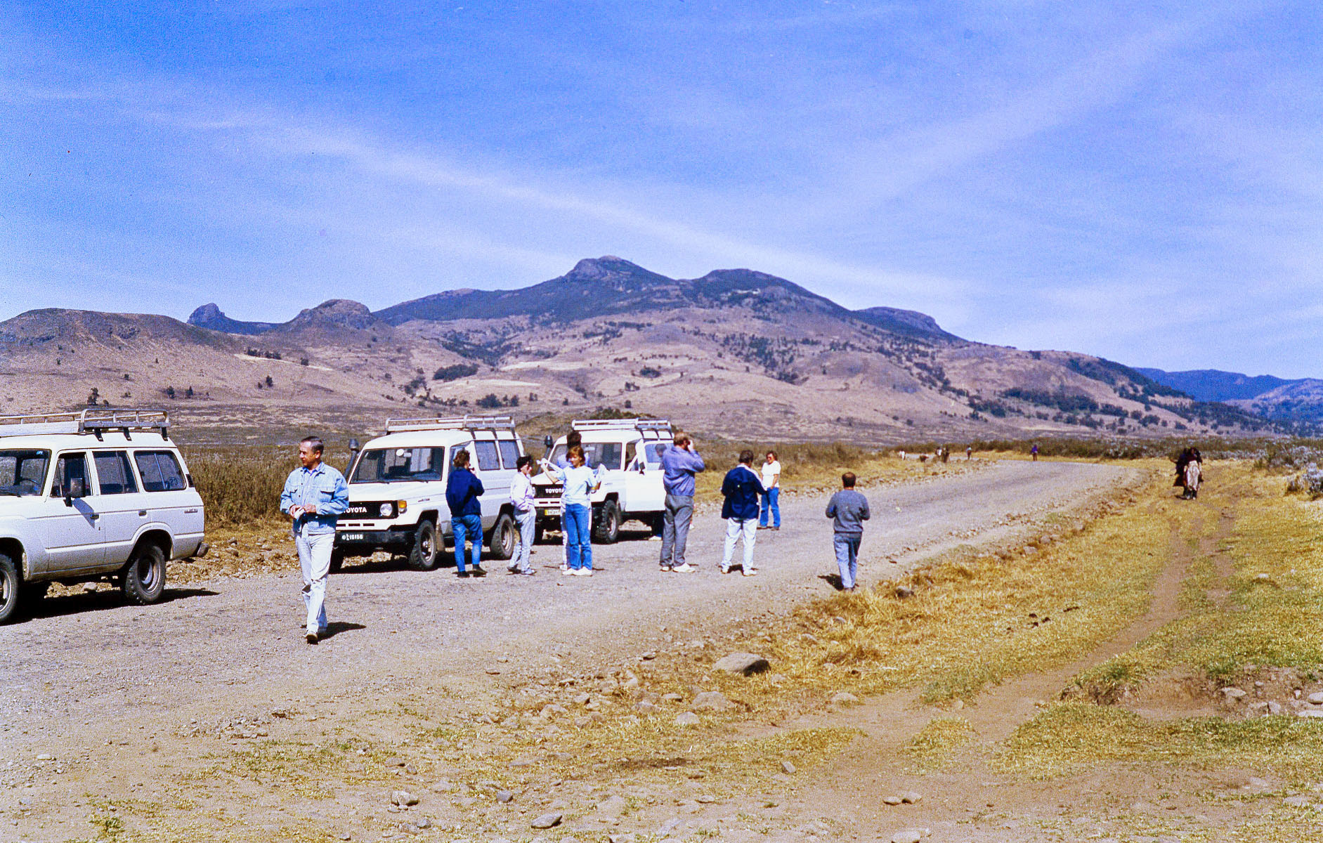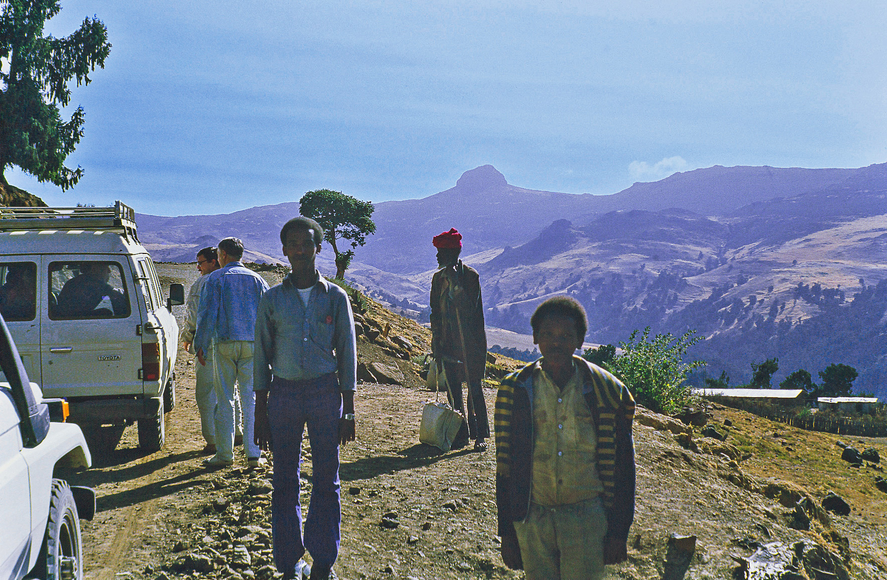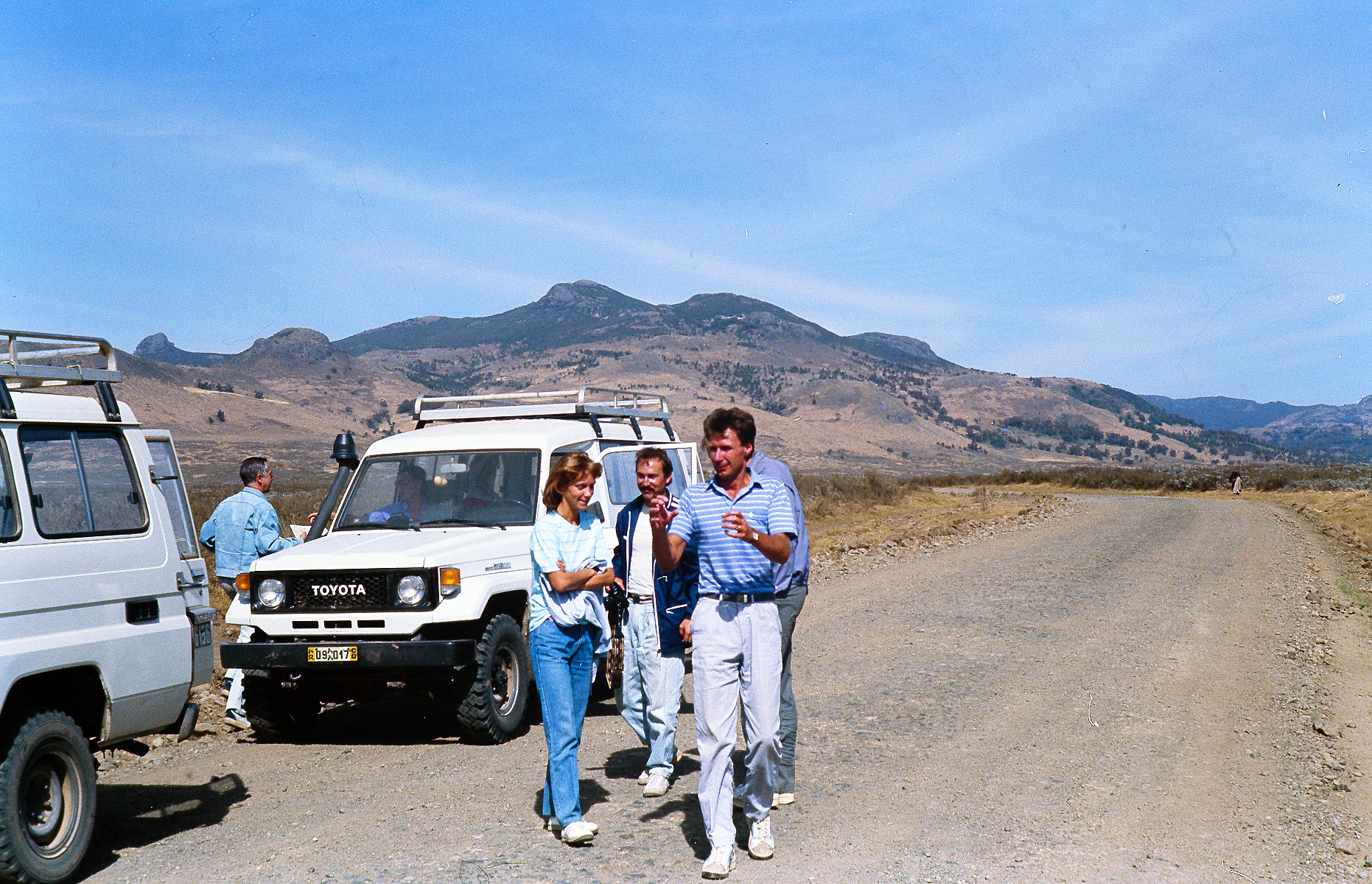 V pátek 13. ledna 1989 jsme dorazili k naší ambasádě, kde na nás čekal mikrobus. Vyjeli jsme ven z hlavního města a čekala nás dost dlouhá cesta a bylo jasné, že do cíle dorazíme po setmění. Zpočátku asi osmdesát kilometrů jsme absolvovali pohodlně po asfaltové silnici, ale v městě Asela jsme přestoupili do terénních vozidel Toyota Land Cruiser a potom cesta konečně dostala nádech dobrodružství. Dále jsme totiž pokračovali po prašných a kamenitých šotolinových cestách. Myslím, že je vybudovali pomocí buldozeru. Během chvíle nás začal obklopovat všudepřítomný načervenalý prach. Foťák jsem měl v igelitovém pytlíku, zajišťěném gumičkou, ale navzdory tomuto opatření se prach dovnitř dostal.