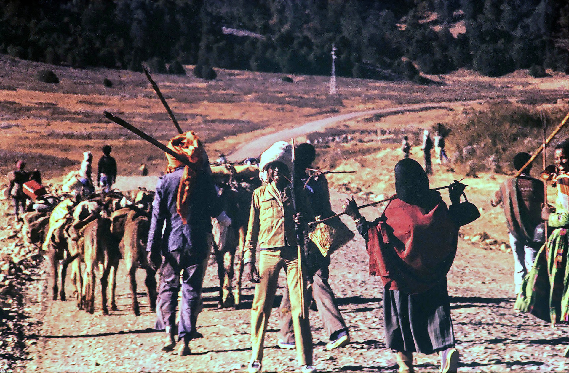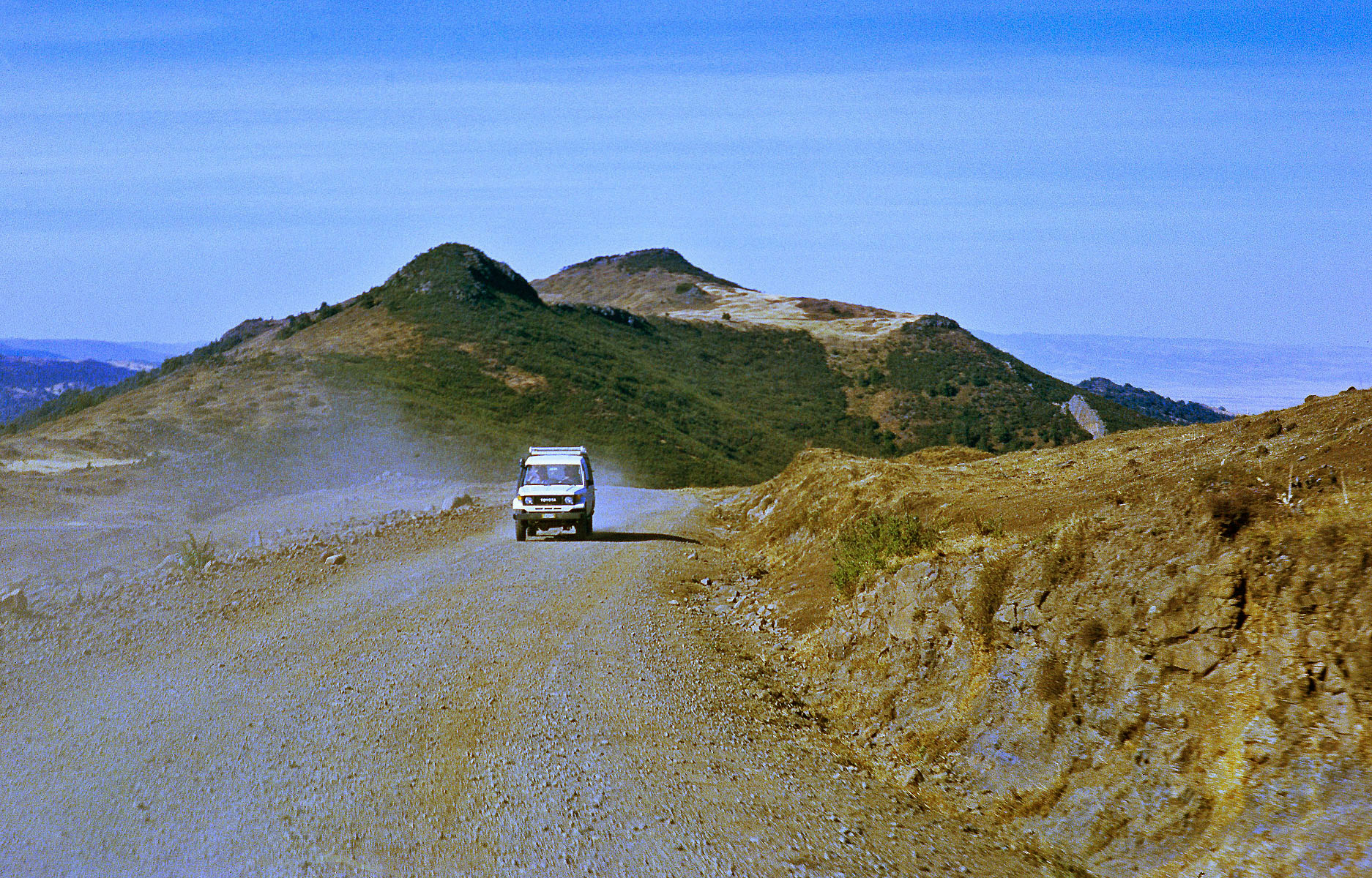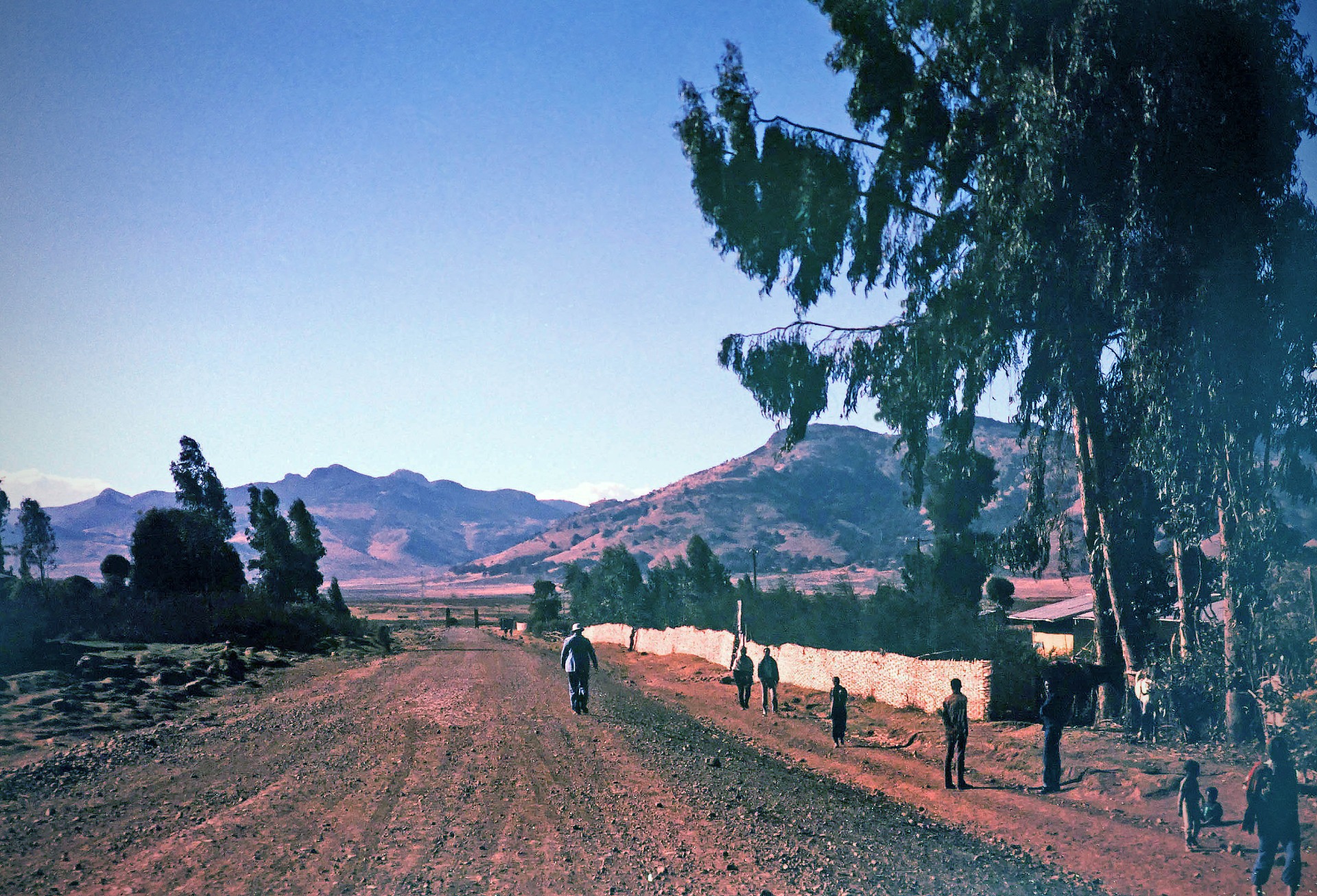 V pátek 13. ledna 1989 jsme dorazili k naší ambasádě, kde na nás čekal mikrobus. Vyjeli jsme ven z hlavního města a čekala nás dost dlouhá cesta a bylo jasné, že do cíle dorazíme po setmění. Zpočátku asi osmdesát kilometrů jsme absolvovali pohodlně po asfaltové silnici, ale v městě Asela jsme přestoupili do terénních vozidel Toyota Land Cruiser a potom cesta konečně dostala nádech dobrodružství. Dále jsme totiž pokračovali po prašných a kamenitých šotolinových cestách. Myslím, že je vybudovali pomocí buldozeru. Během chvíle nás začal obklopovat všudepřítomný načervenalý prach. Foťák jsem měl v igelitovém pytlíku, zajišťěném gumičkou, ale navzdory tomuto opatření se prach dovnitř dostal.