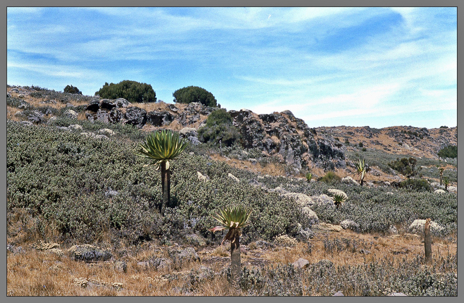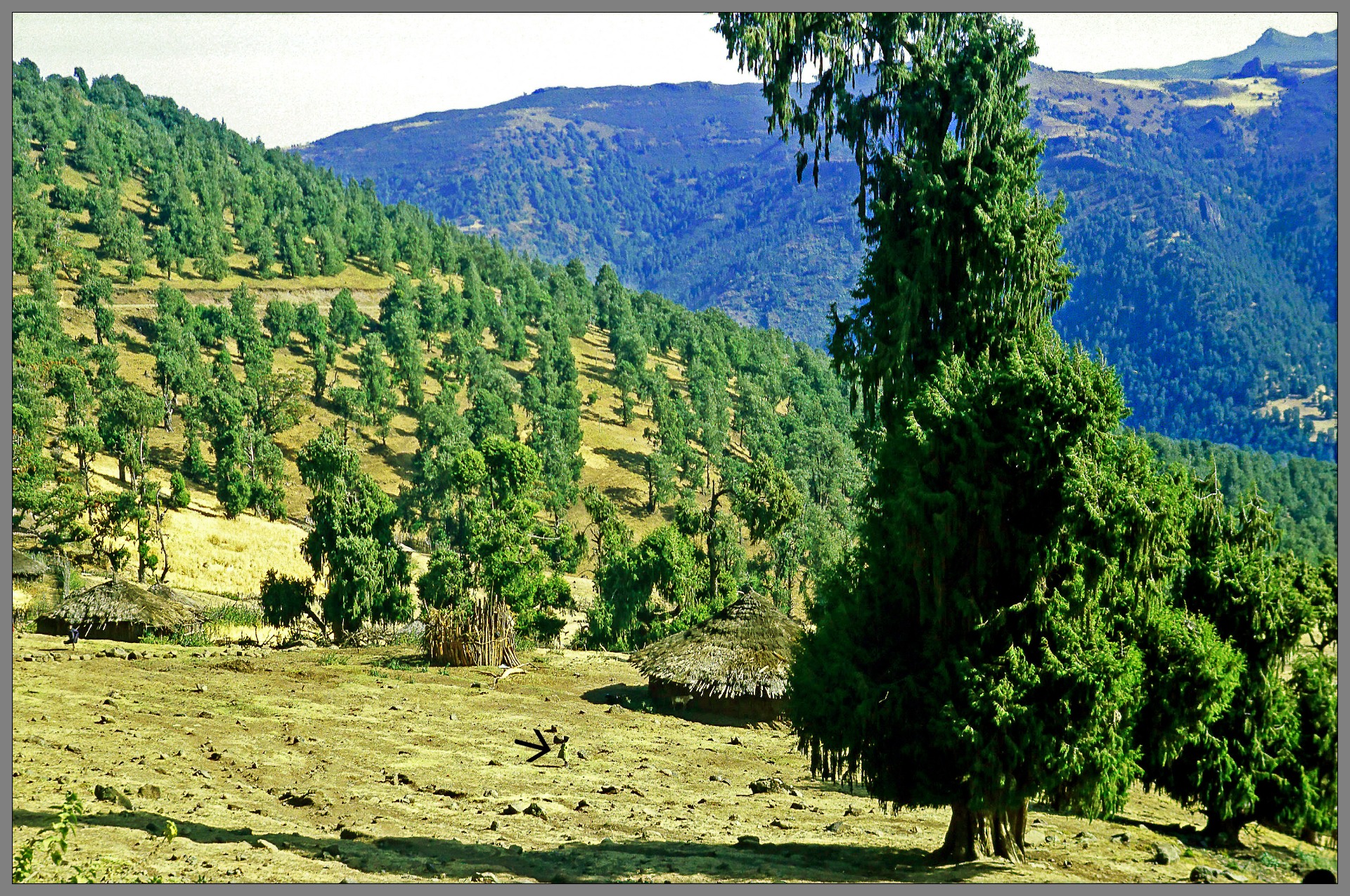 Cesta na náhorní plošinu nebyla pouze cestou téměř bez vegetace. V jednom údolí jsem narazili na ethiopské lesy. Jsou jiné než doma. Tady jednotlivé stromy, zde obrovské tisy, rostly daleko od sebe. Jejich kořenový systém potřeboval v období sucha velký kořenový systém, který zabezpečoval využití každé kapky vlhkosti.
