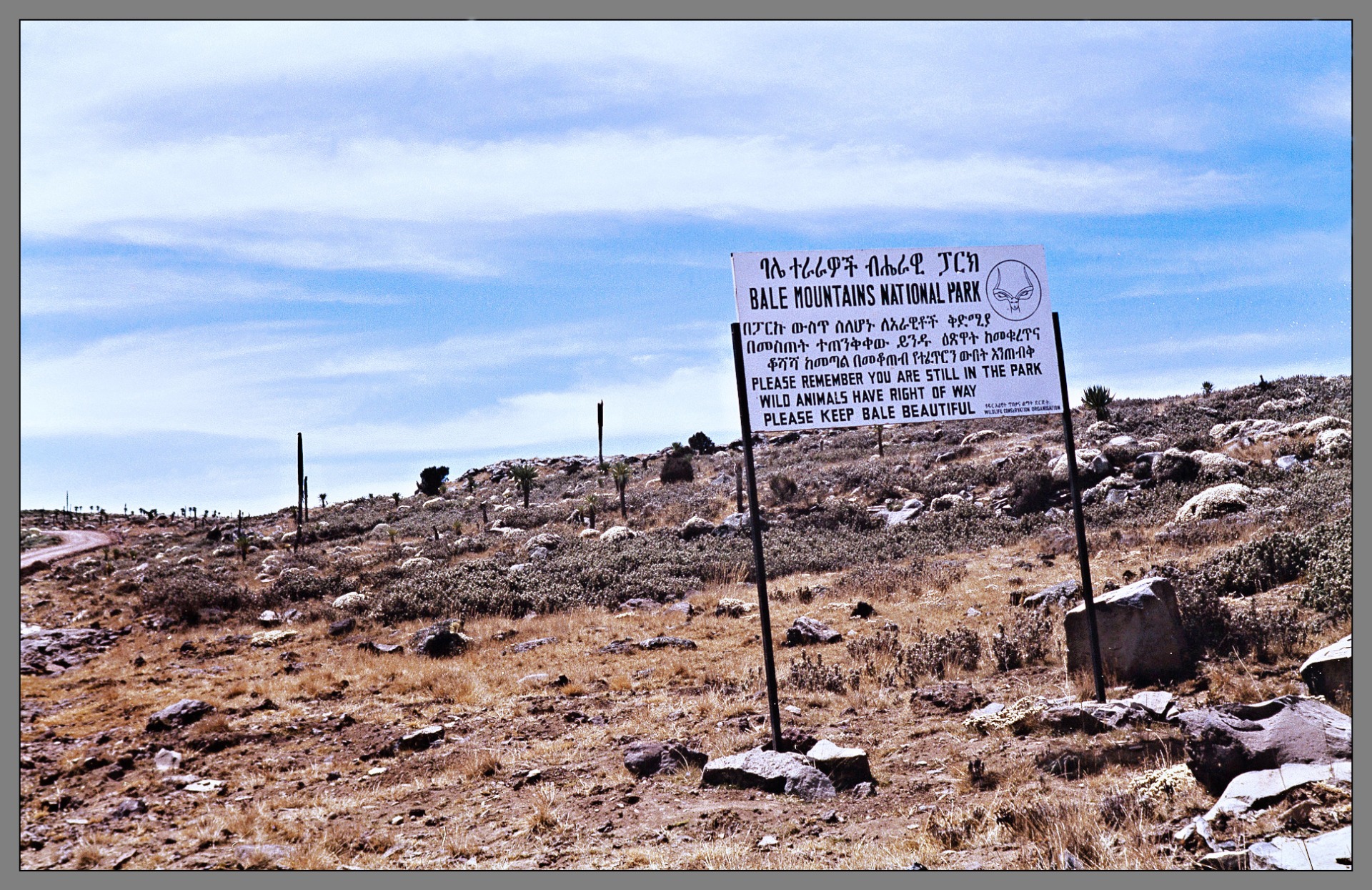 Na čistotu přírody a ochranu zdejších zvířat jsou místní velice citliví. Těchto poutačů je v parku Bale hodně. Jsem rád, že jsme po sobě nezanechali žádnou stopu.