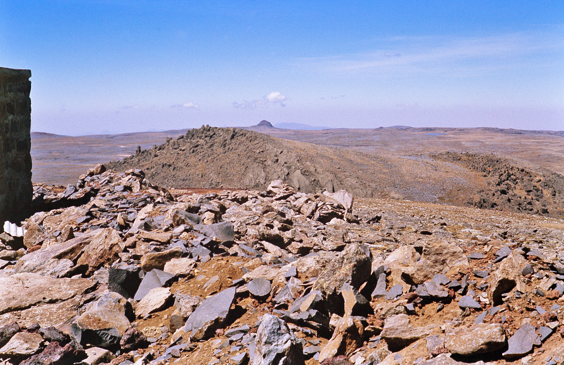 Paradoxně jsme skoro na vrchol dojeli Toyotou. Vegetace v této nadmořské výšce téměř zmizela a zůstala jen kamenná pole. Vzduch byl dokonale průzračný a mírně mrzlo. Chtěl jsem se tedy trochu proběhnout, abych se zahřál a prohýbal kosti. Po chvíli mi však docházel dech-nedostatek kyslíku v této nadmořské výšce byl znát. Ještě, že jsem si vzal svetr a i tak v jsem mírném vánku pociťoval mrazivý vzduch hory.