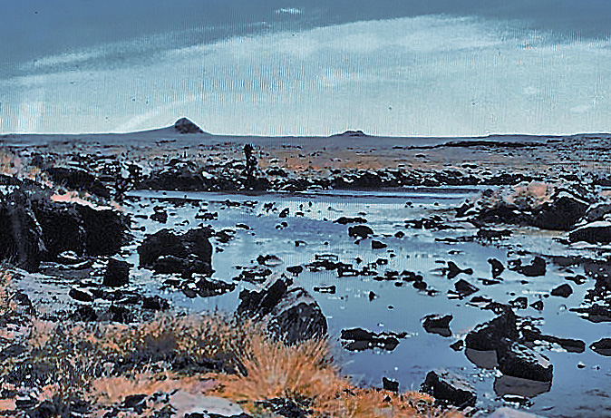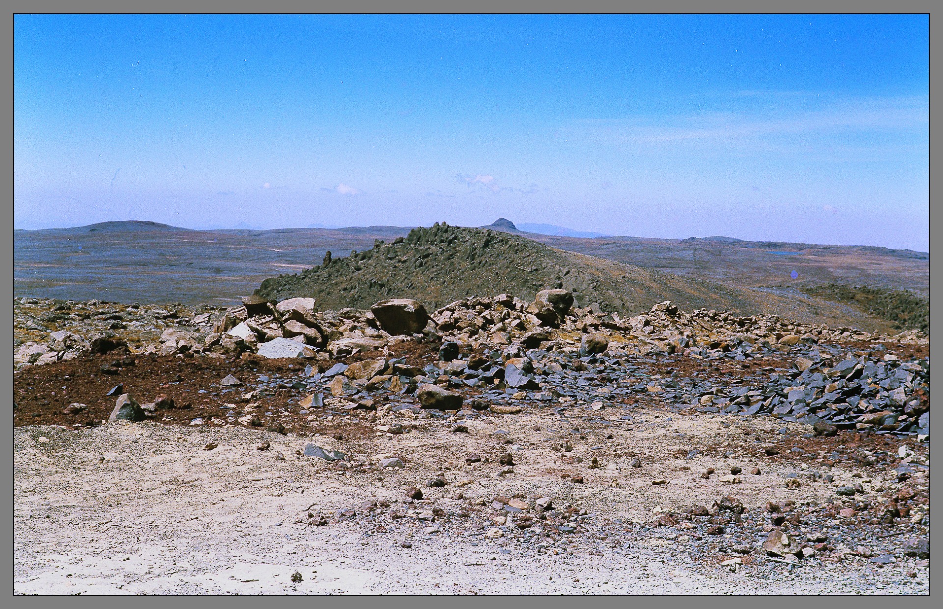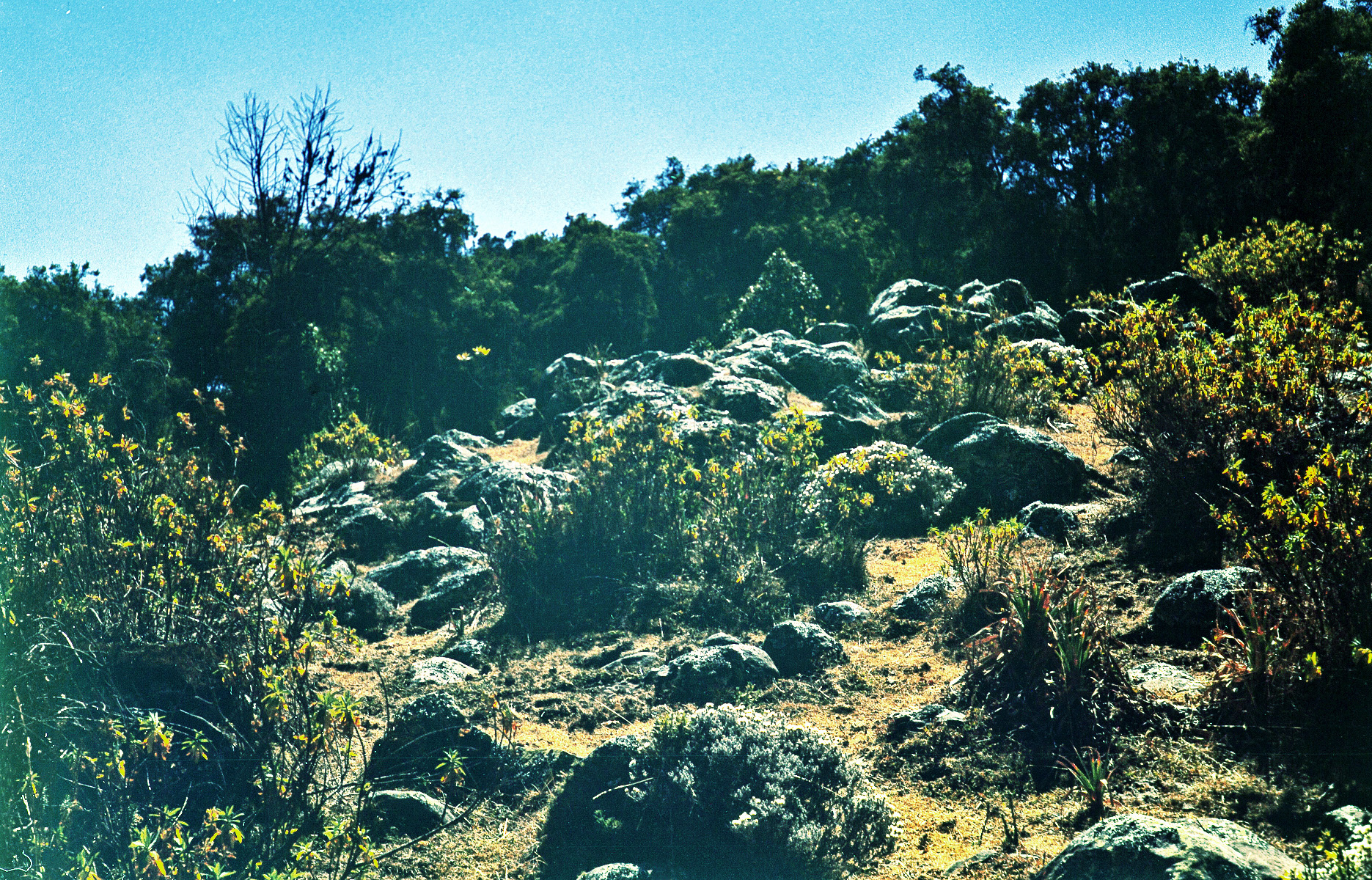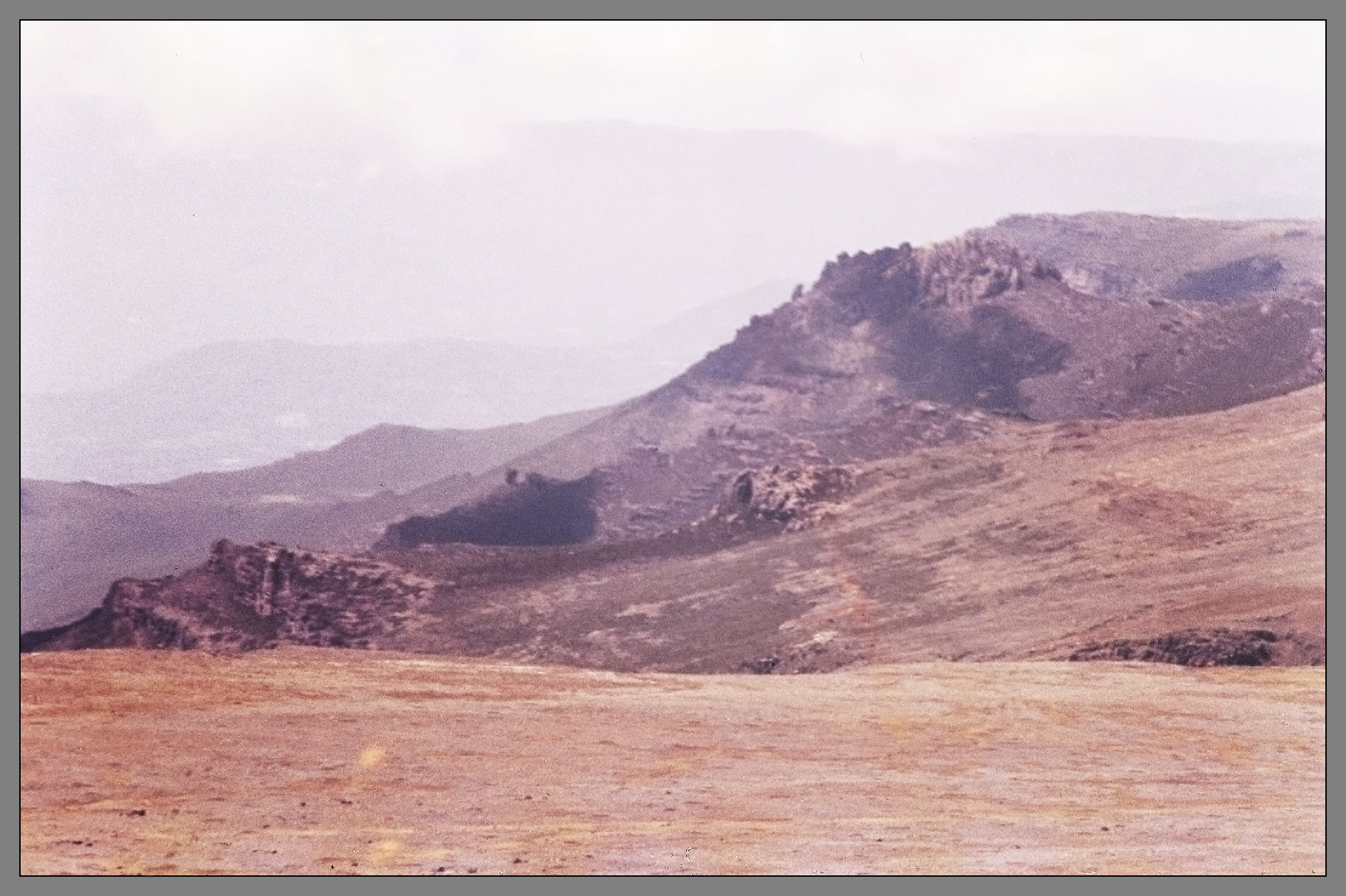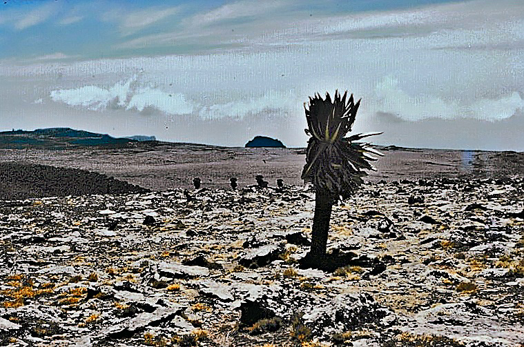 Jak už jsem napsal, v této nadmořské výšce téměř vymizela vegetace. To však neplatilo pro zakrslé palmy. Její jeden exemplář vyrostl kousek od nejvyššího bodu pohoří. Omlouvám se za kvalitu, jedná se o sken fotografie v nevalné úrovni.